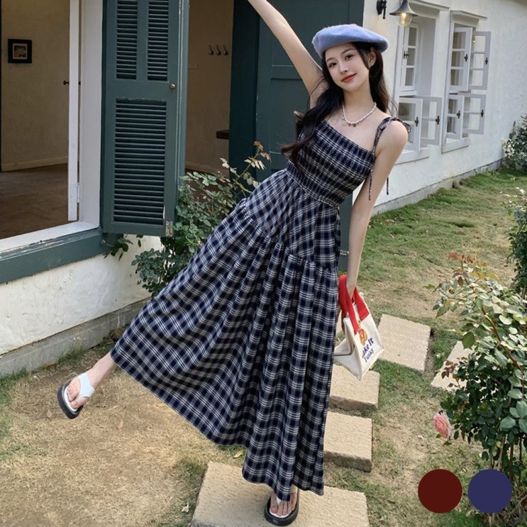 롱 민소매 체크 A라인 튜브탑 빅사이즈 원피스 코디 소개