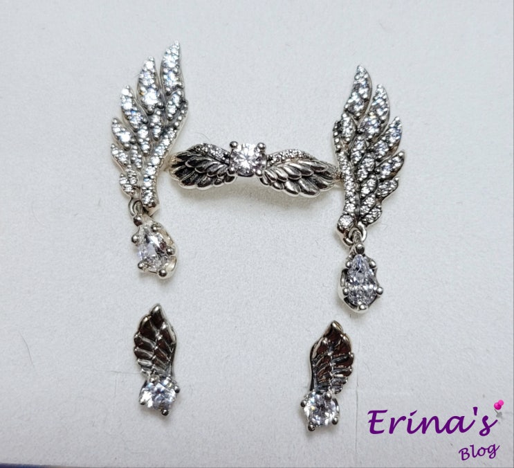 드디어 완성 된 나만의 판도라 엔젤 윙 시리즈. 엔젤 윙 반지와 엔젤 윙 귀걸이들. 그증 하나인 스파클링 ...