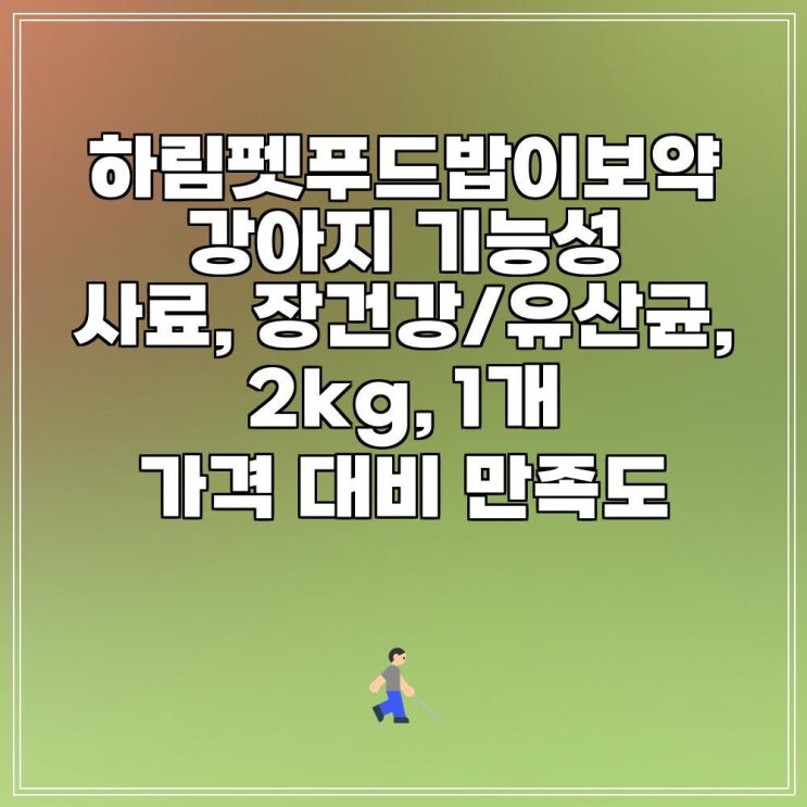 안녕하세요, 쇼핑을 사랑하는 여러분! 하림펫푸드밥이보약 강아지 기능성 사료, 장건강/유산균, 2kg, 1개 ...