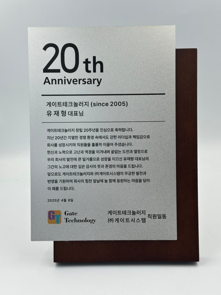 창립 20주년 기념패 제작