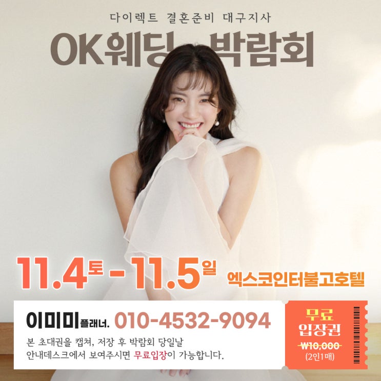 2023년 11월 4일 - 5일 주말 인터불고호텔엑스코 & OK웨딩박람회 안녕하세요 ok웨딩 이미미플래너입...