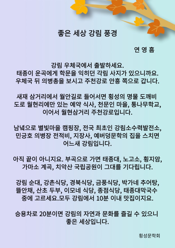 ------------------------ 최근 방문한 맛집들은 강림면과 안흥면의 맛집들인데, 개인적으로 맛이 느껴지거...