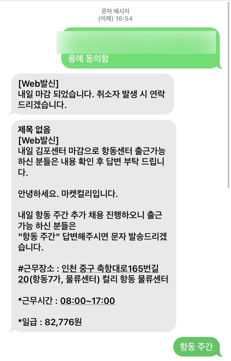 마켓컬리 인천 항동센터 알바 후기