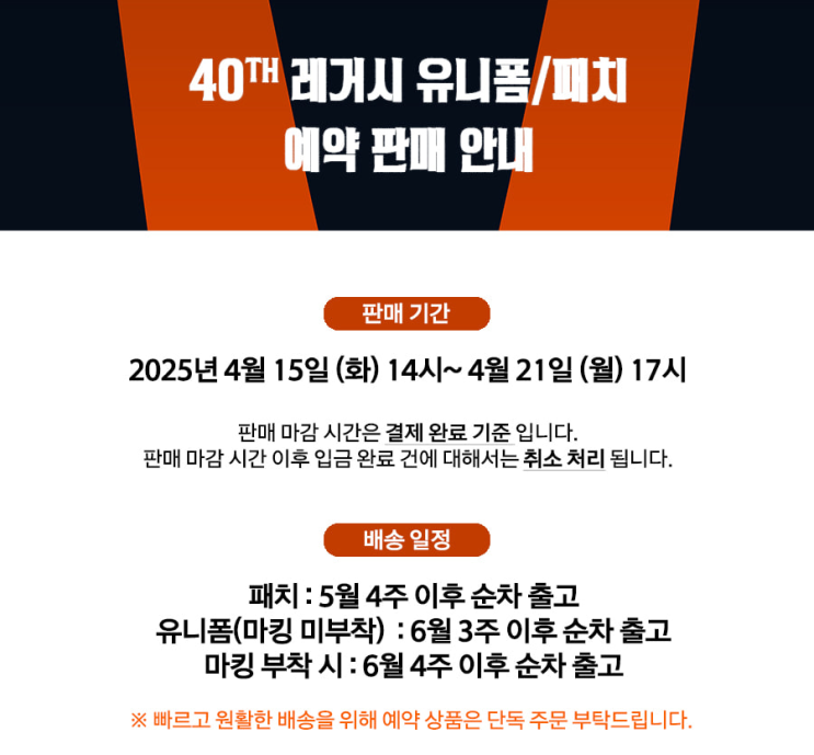 한화이글스 40주년 기념 레거시 유니폼ㅣ레플리카 형지엘리트샵ㅣ유니폼 패치 예약 판매 안내