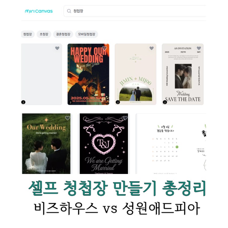 셀프청첩장 미리캔버스 2만원 할인쿠폰, 비즈하우스vs성원애드피아 실제 가격 비교 총정리