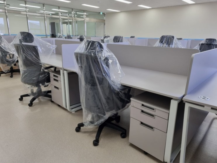 사무용가구 납품사례입니다. 책상, 의자, 회의용테이블, 회의용의자, 이동서랍등 사무용가구 일체를 납품했습니다.