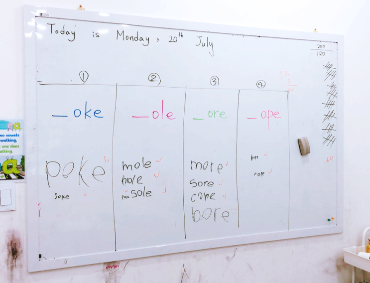 파닉스 후반 단계 아이들 수업 ORT 4단계입니다. 단어의 스펠링은 자연스럽게 배우는...