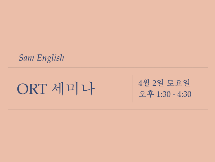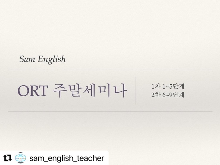 5월 6월 ORT 세미나 안내드립니다~ #ort수업, #쌤잉글리쉬, #상도동영어학원, #오알티세미...