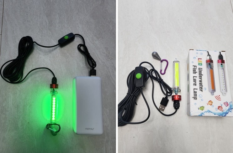 호래기 낚시 필수템인 일반과 수중 집어등 비교