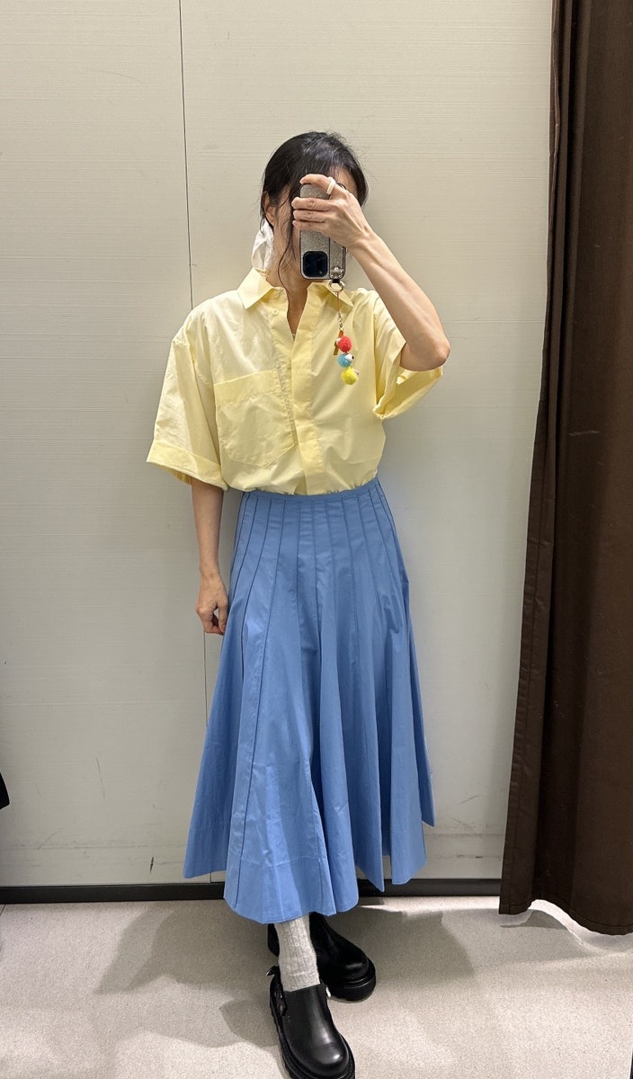 자라 매장에서 입어본 플리츠 롱스커트와 블라우스 소개할게요 엄마둥이 신체 사이즈 키 160 체중 46 상의 ...