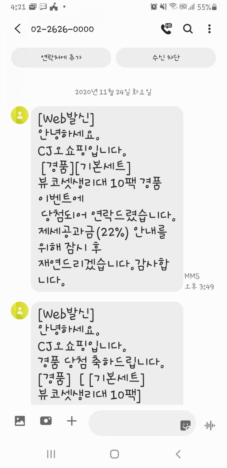 열일하는도중 부재중전화가 와있었다. cj오쇼핑이라서 또 무슨 광고전화려니하고 문자도 와있길래 확인하는...
