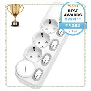 KDTAP 국산 개별형 스위치 멀티탭 3구 고용량 콘센트 16A 안전 접지 과부하차단 1개 5m 현대일렉트릭...