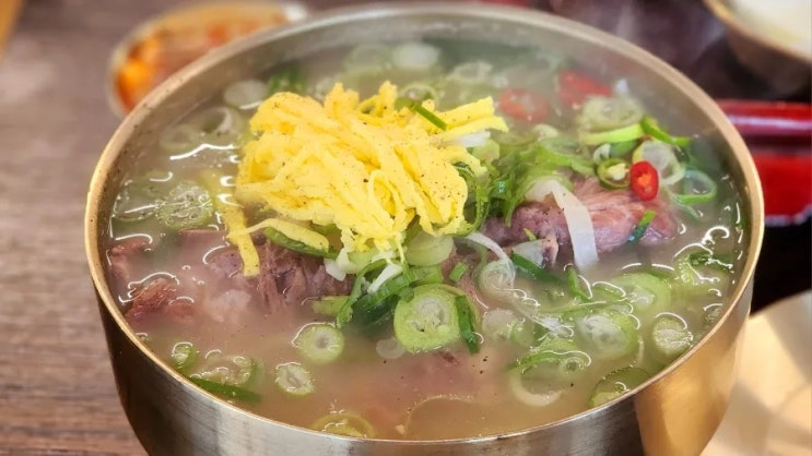 평이담백뼈칼국수 / 성수 뼈칼국수 테이블에 차려져 있었던 기본 반찬 계란지단이 듬뿍 올라간 뼈칼국수 뼈...
