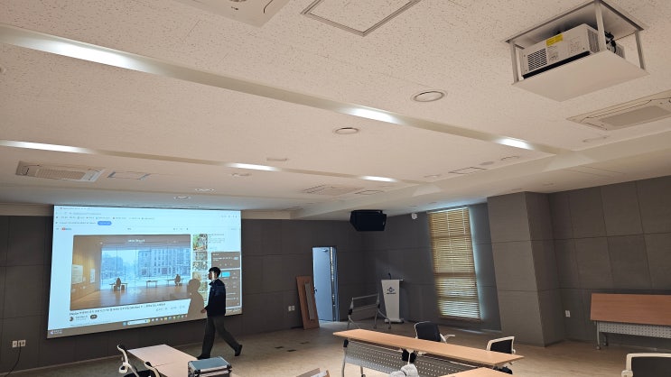 안녕하세요. 지오 영상입니다. 이번 현장은 대학교 강의실 전자교탁 설치 현장입니다. 설치 전 모습 빔프로...