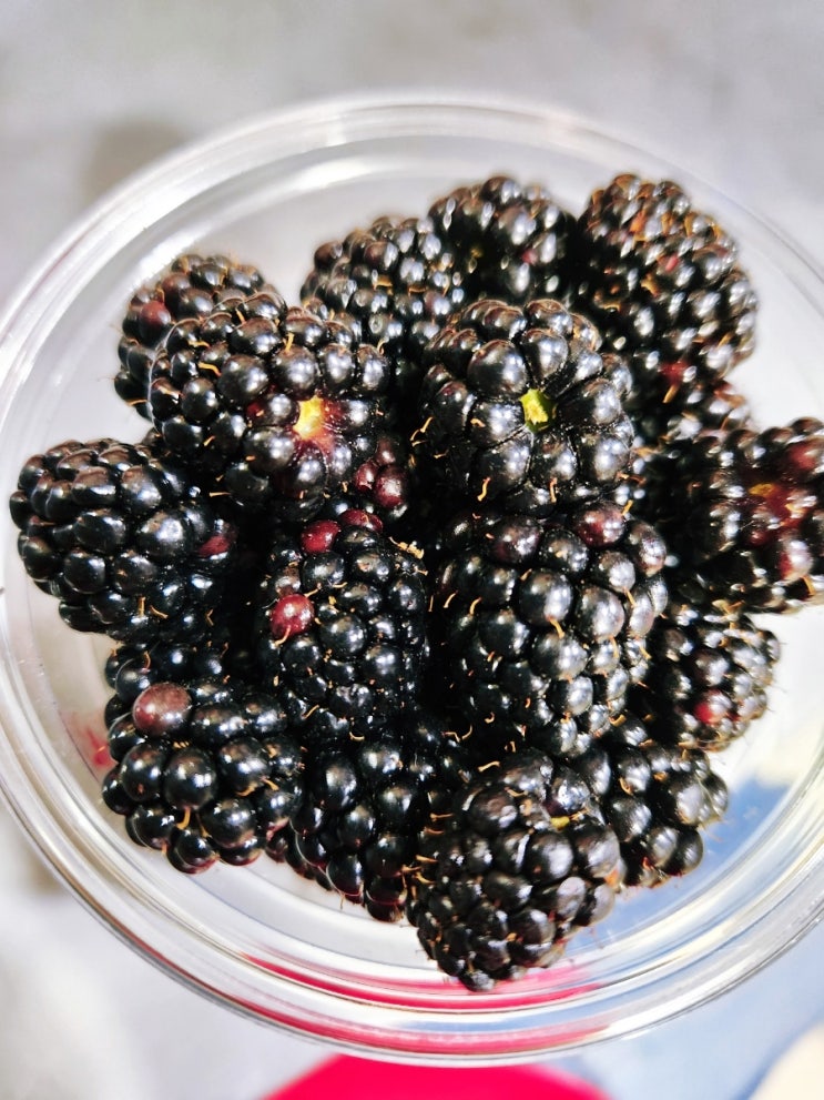 블랙베리 생과 회사 직원분이 직접 키운 블랙베리를 따오셔서 맛봤어요. 비타민B.C에 종합영양이 가득 얼...