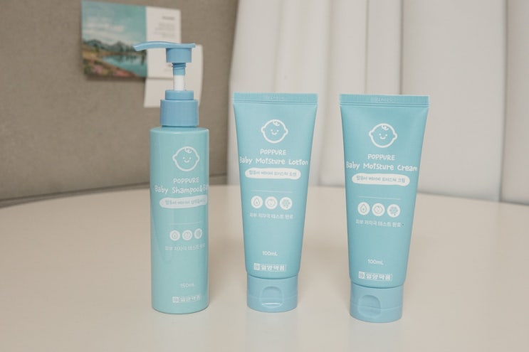 팝퓨어 베이비 3종 바스앤샴푸 모이스처 로션, 크림 17개월 딸 2주간 사용 후기 건조한 겨울을 지나 환절기...
