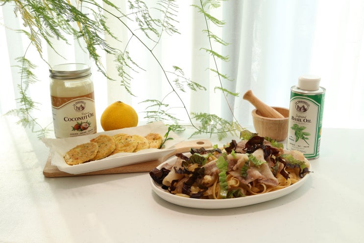 안녕하세요 푸디라미예요 오늘 라투랑겔 코코넛오일 이용해 고구마튀김 그리고 바질오일로 바질오일파스타 ...