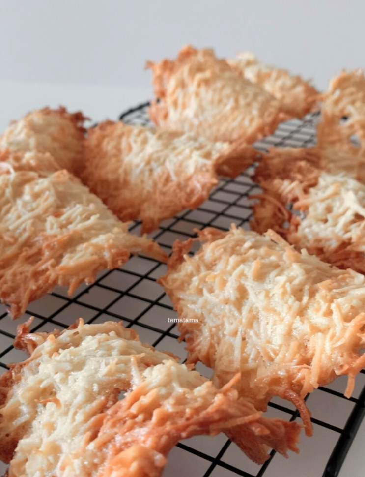 집에 건조 코코넛롱이 많이 남아있어서 뭘 만들까 하다가 오랜만에 만든 코코넛튀일입니다. 아이가 잘 먹어...