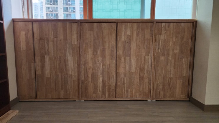 수납이 짱짱한 고무나무 원목 LED 화장대
