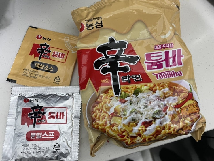 신라면 툼바 리뷰입니다 소스가 두가지네요 액상소스 냄새가 좀 이상하네여 ㅋㅋ 맛은 문제가 없네요 3분만...