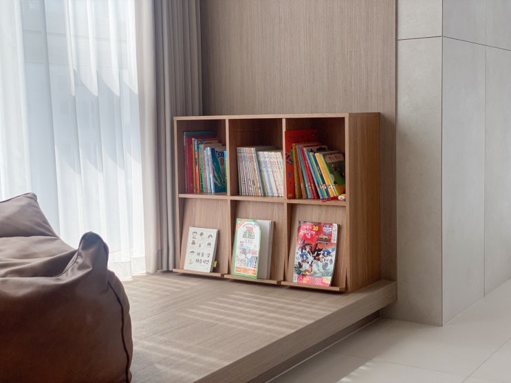 원목 가구 인테리어 어린이 거실 책장 마켓비 수납장 안녕하세요, 친구네 집들이 다녀온 리빙인플루언서 @...