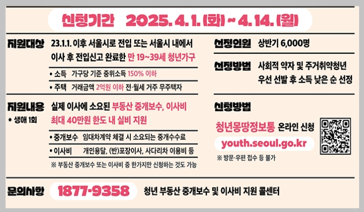 서울시 청년 2025년 부동산 중개 보수와 이사 비용 지원 사업 신청받는 중,,,