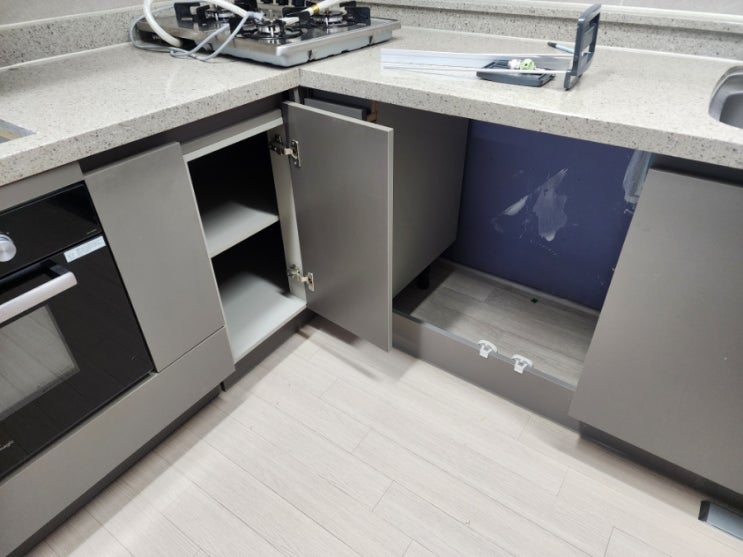 세종 새나루 11단지 엘지 식기세척기 설치를 위한 코너장 살려서 싱크대 공사