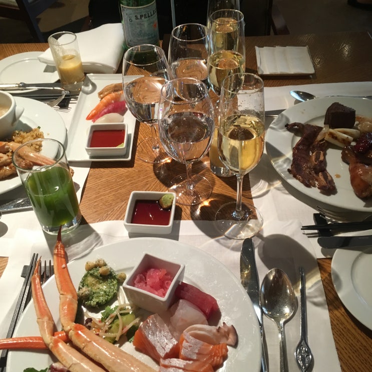 광화문에서 횟집을 가기로 함 회를 잘 모르지만 친구를 따라가 보기본 반찬 도토리묵, 샐러드, 유부초밥 등...