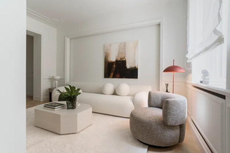 구름 3인용 소파와 트래버틴 대리석식탁 웨인스코팅이 예쁜집