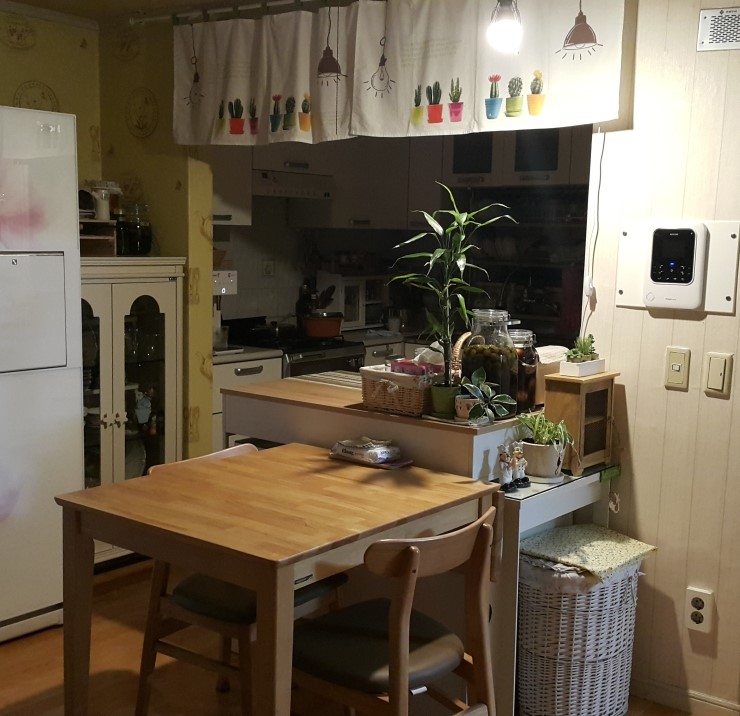 주방 조금 바뀐 모습~~ 여름맞이해서 주방정리를 조금 함.. 리바트 확장형 아일랜드 식탁을 구입해 1년간 ...