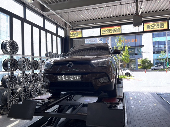 저는 오늘도 타이어 집에 잠시 머물렀습니다. 티볼리 차량 얼라이먼트와 휠 교환 작업, 투싼 차량 얼라이먼...