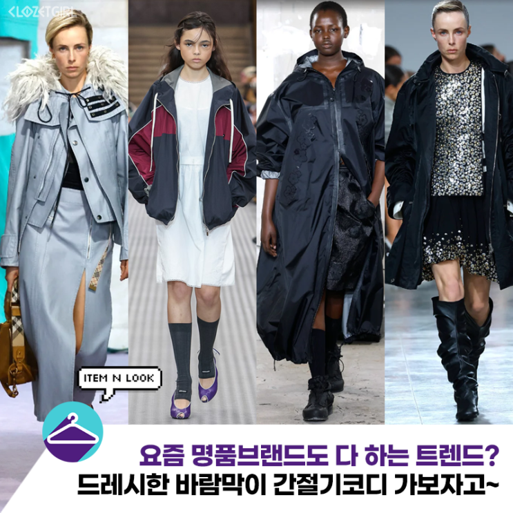요즘 명품브랜드도 다 하는 트렌드? 드레시한 바람막이 간절기코디 가보자고~