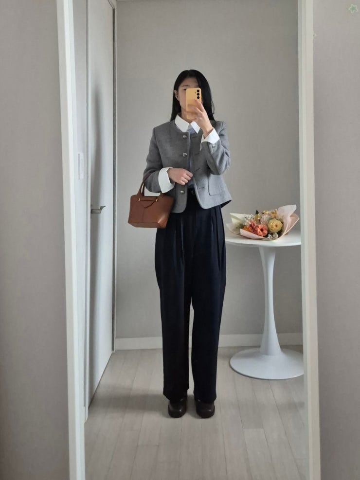 [Review] 노카라 트위드 자켓 코디 조합 실른(SILN) 히든 버튼 커프스 디테일 스트라이프 셔츠 후기
