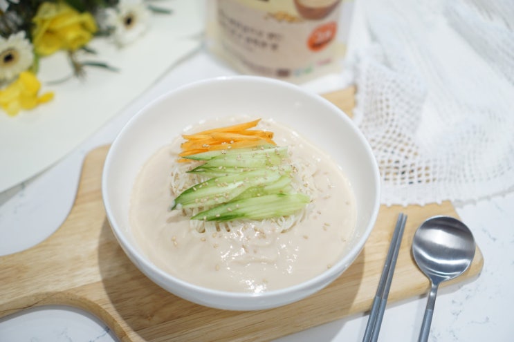 달지 않고 걸쭉고소한 파주장단콩 콩국물 맛있게 콩물만들기 어렵지 않게 그냥 바로 국수 삶아서 부워서 소...