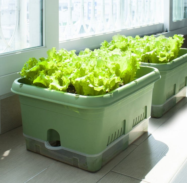 이게 #저면관수 화분이라 물을 많이 먹어서 그런지 상추가 자라지 못하고 시들어 가네요. 다들 잘된것만 유...