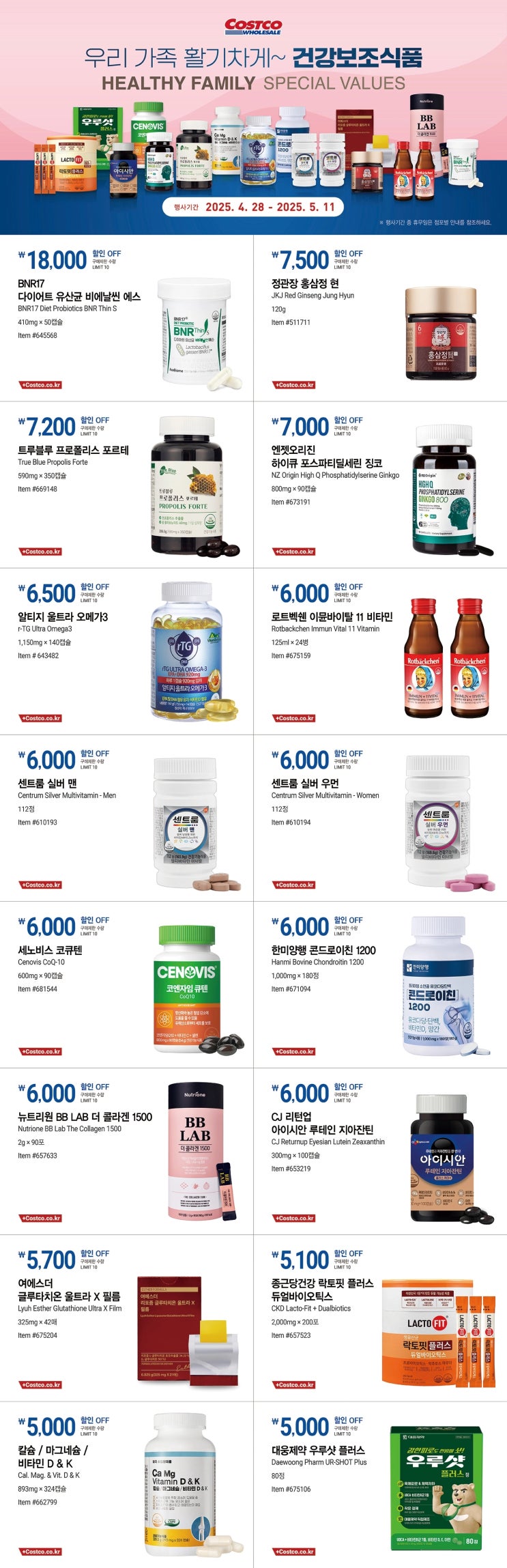 2025년 코스트코 4월 다섯째주 5월 첫째주 건강보조식품 할인상품 전단지 기간 2025년 4월 28일 ~ 2025년 5...