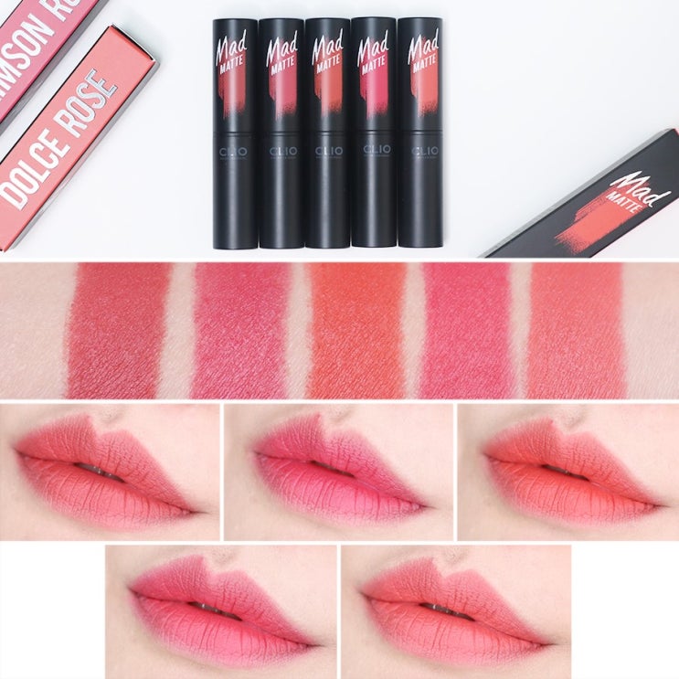 미친꽃미모 말린장미립스틱. 클리오 매드매트립 로즈컬렉션 5종 발색