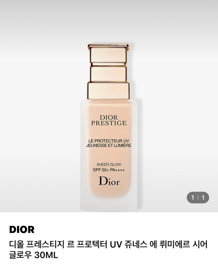 디올 프레스티지 르 프로텍터 UV 쥬네스 에 뤼미에르 시어 글로우