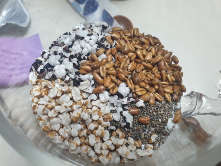 엄청 열심히 보는 다이어터 분의 식단 너무 해보고 싶었어요 그릭요거트에 곡물들을 넣어 섭취 영양과 포만...