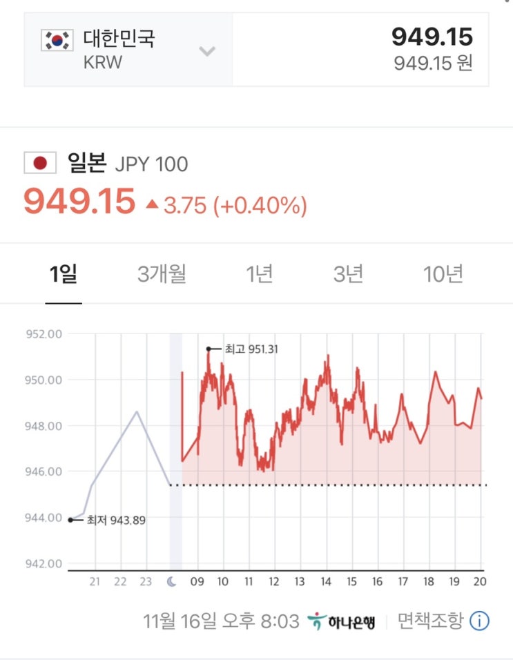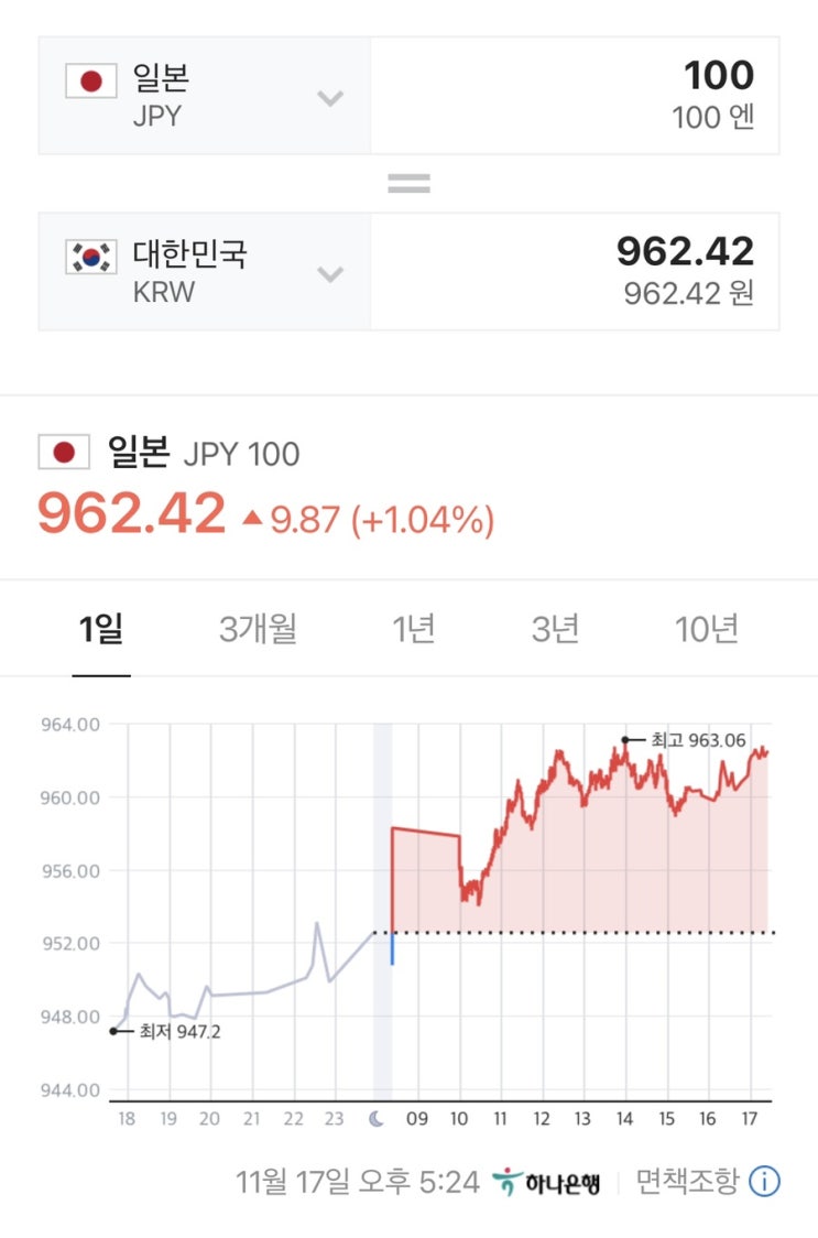 오늘은 결혼기념일 기념 서울 한옥마을을 놀러가느라 엔화를 쳐다보질 못했다 ㅠㅠ 목표인 960원이 넘으면 ...