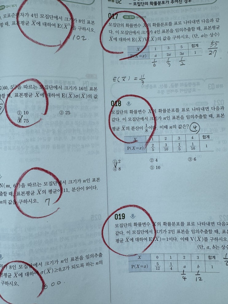 모집단 표본 임의추출 부분을 까먹고 있었다 앞장은 개념체크 부분처럼 쉬운 지라 쉽게 풀었다 최저 점수 ...