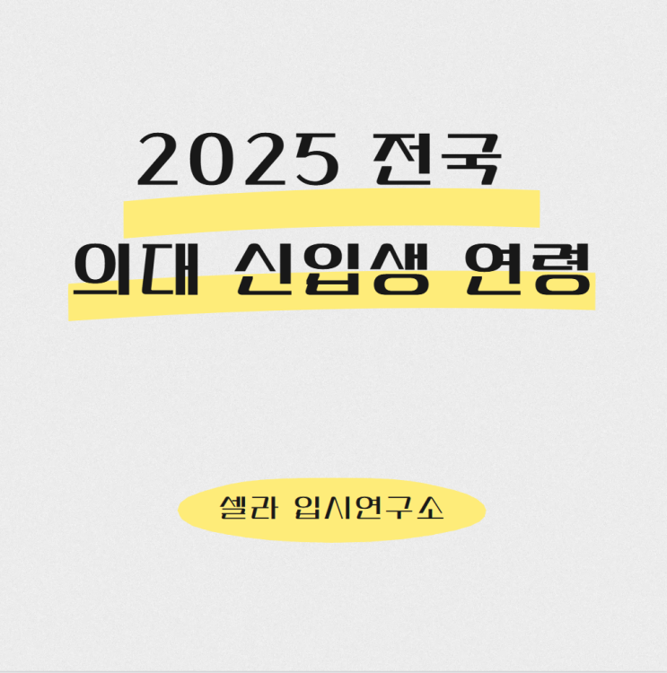 [셀라입시연구소] 2025 전국 의대 신입생 연령 구성