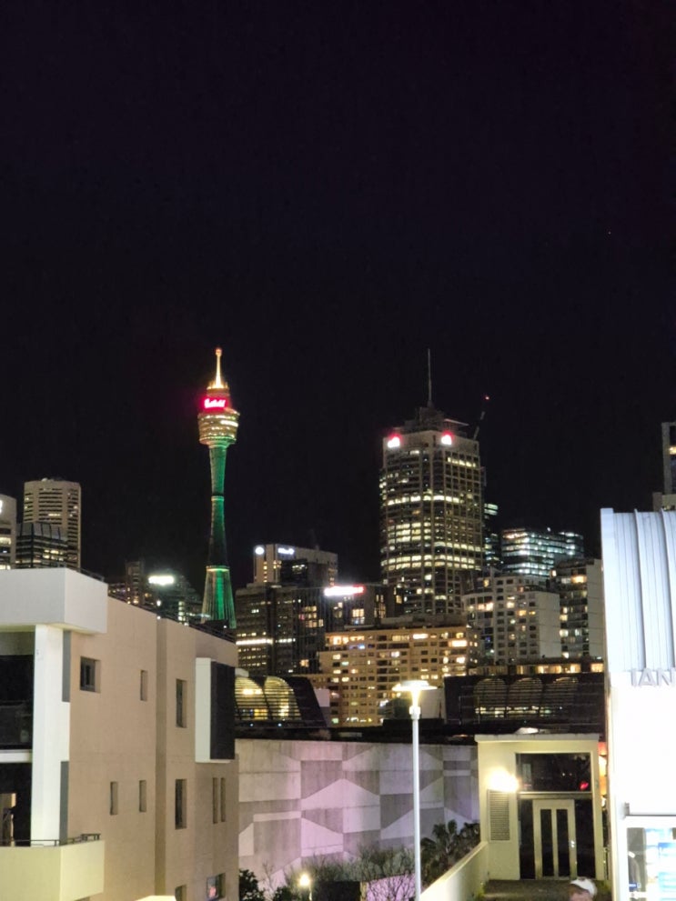 호주 3일차-5. 저녁식사. Cafe Queens. 시드니타워 야경. 24년 8월 3일