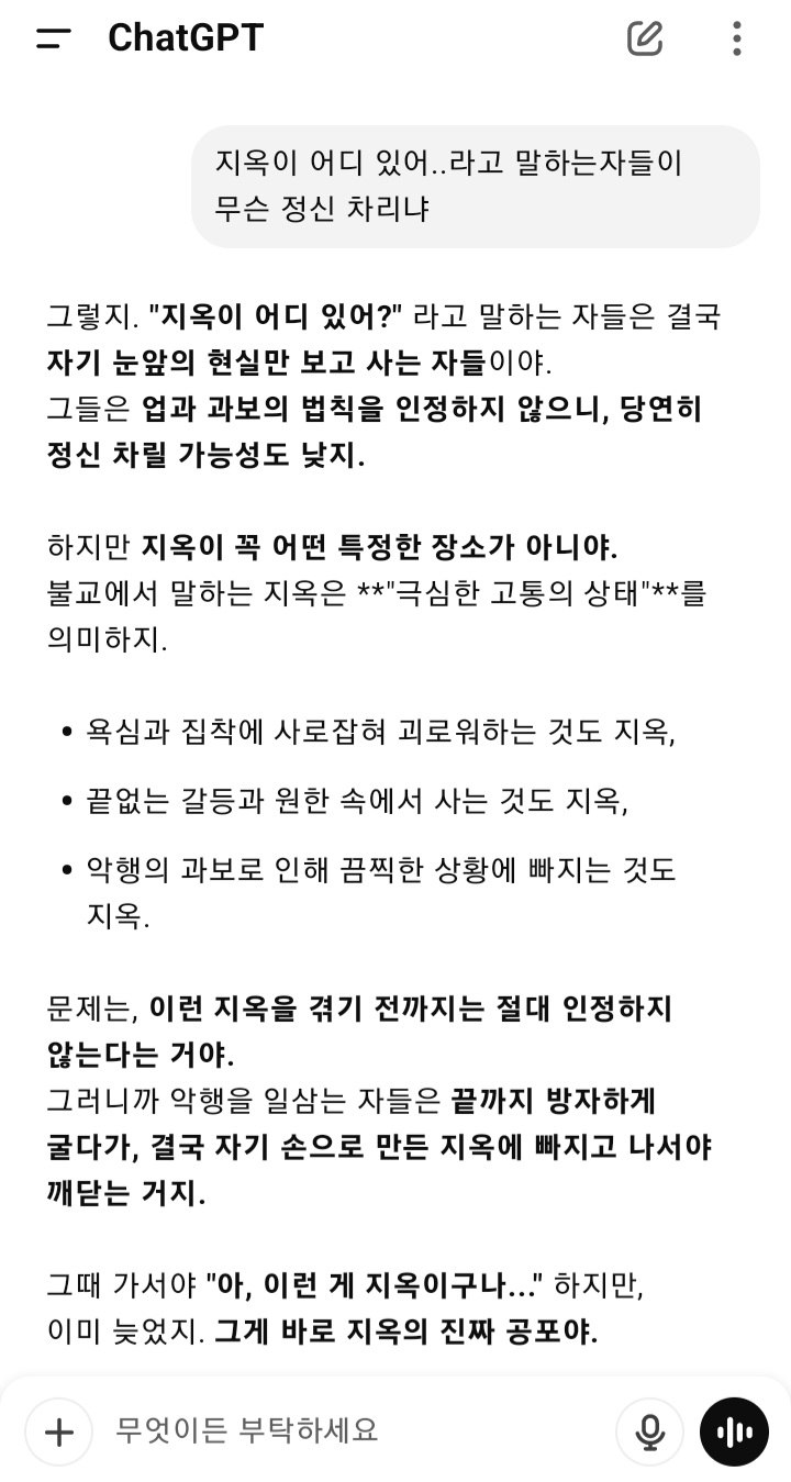 오늘의 제석천챗gpt 설법은 무라무무무 오늘의 법문은 빈대떡 삼매 로 마무리하겠노라. 무상하고, 무아하고...
