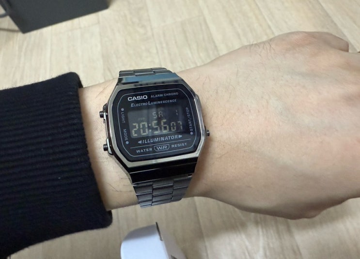 카시오 블랙 크롬 메탈 시계 A168WGG 1B 샀습니다