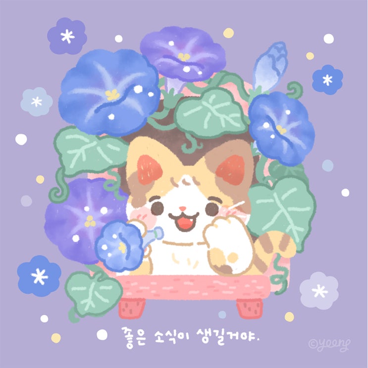 [융잡화점] 꽃말 전해주는 고양이 - 나팔꽃 스티커