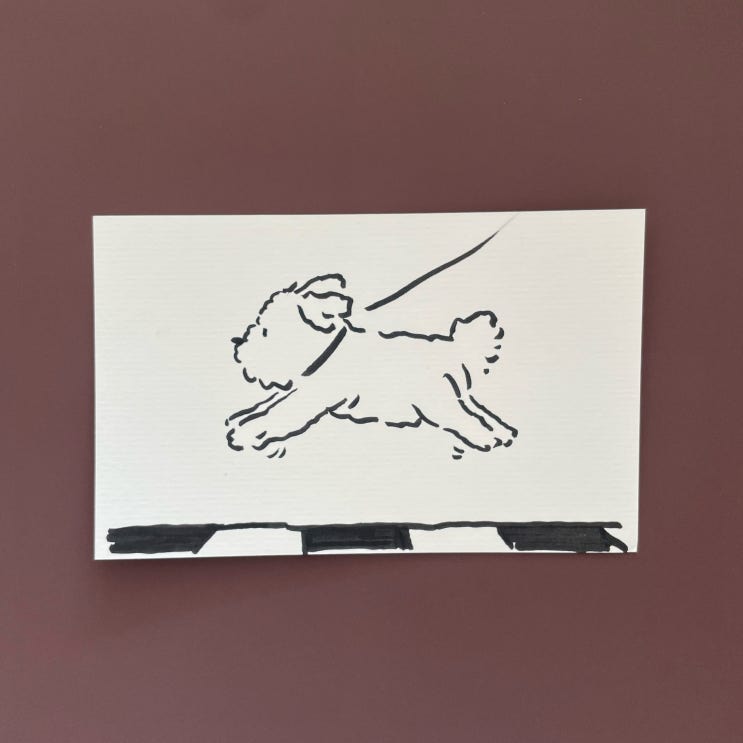25년 첫 드로잉. 신호 대기 중. 나는 분명 날고 있는 흰 솜뭉치를 보았다. 귀여운 강아지인데, 꽤 건장하고...