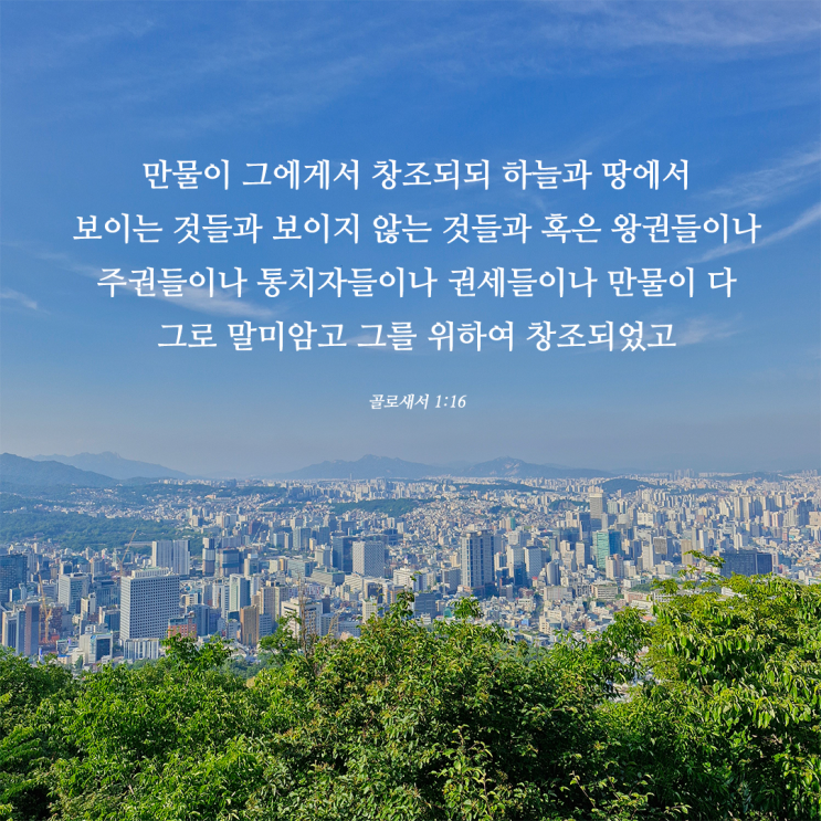 [말씀묵상] 만물이 그에게서 창조되되 하늘과 땅에서 보이는 것들과 보이지 않는 것들과 혹은 왕권들이나 ...