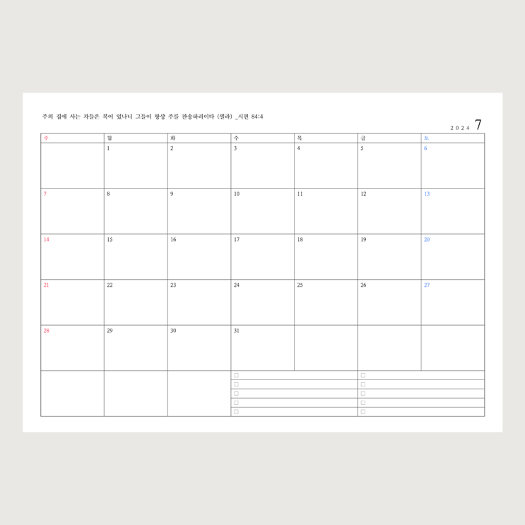 2024년 7월 달력 프린트 가능합니다 :) 굿노트 먼슬리 플래너 PDF