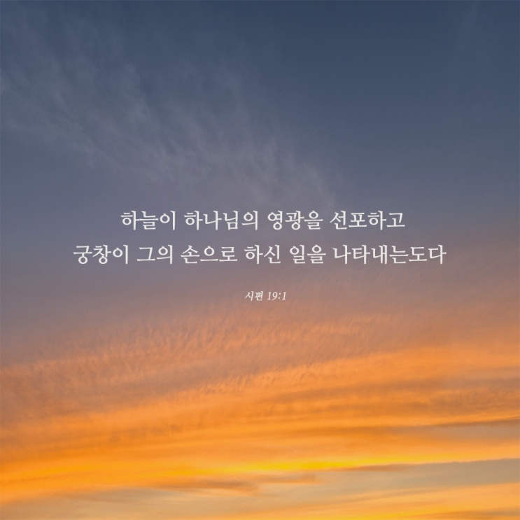 하늘이 하나님의 영광을 선포하고 궁창이 그의 손으로 하신 일을 나타내는도다 (시편 19:1) 아멘 시편에는 ...